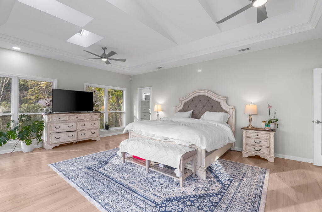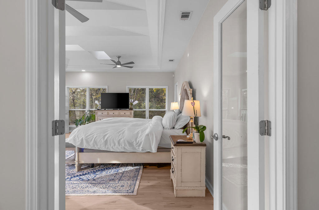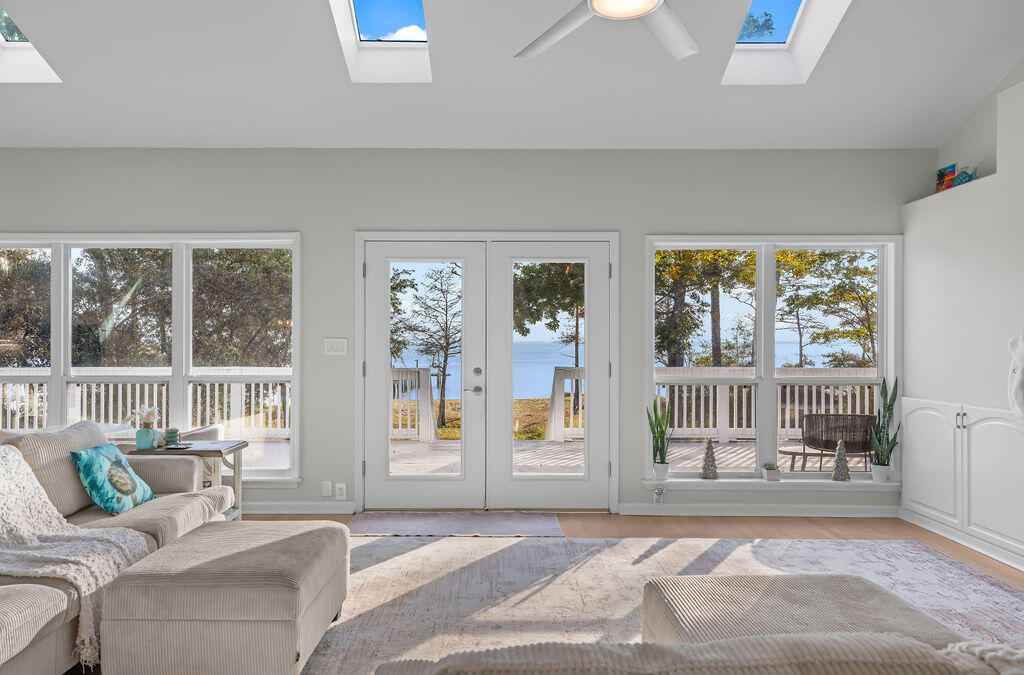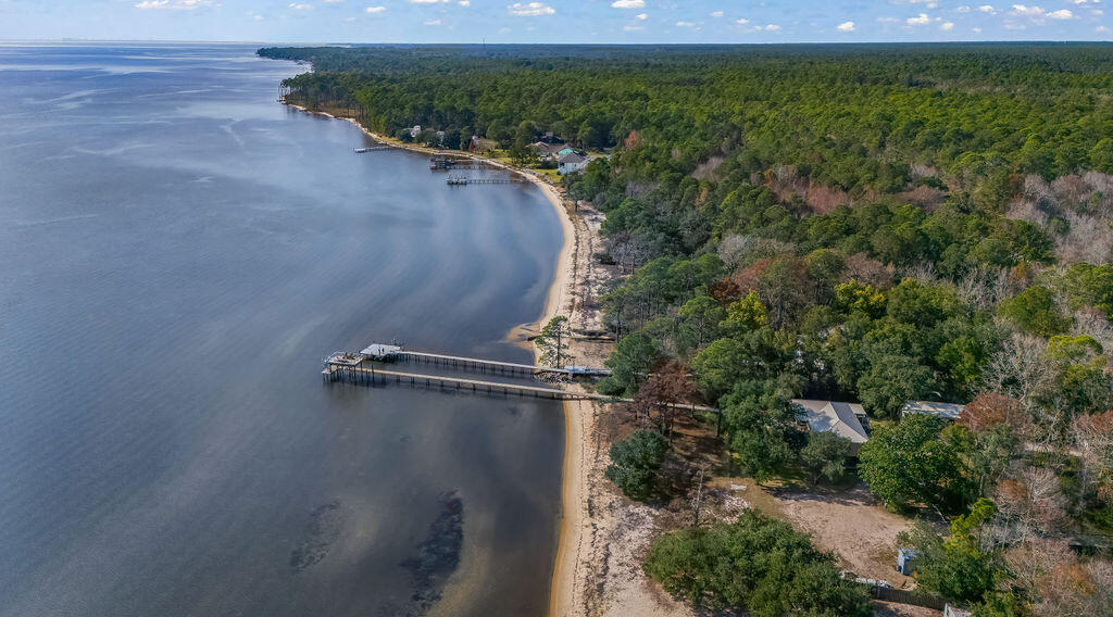 PRICE IMPROVEMENT! Rare 108 ft of private bayfront with NO HOA on 1.56 acres.Welcome to your bayfront paradise featuring a beautifully updated 4-bed, 2.5-bath home with an open floor plan, cathedral ceilings, hardwood floors, and a stunning kitchen with a granite island, double oven, and smart appliances. The primary suite offers unbeatable bay views, vaulted ceilings, and a spa-like bathroom with dual shower systems.Step outside to a 16x62 wraparound deck overlooking the Choctawhatchee Bay, a private sandy beach, and a dock with a gazebo, perfect for sunset watching, fishing, and water days. Upstairs features four spacious bedrooms with panoramic bay views and hardwood floors.Downstairs offers an oversized 2-car garage, workshop/gym space, and an air-conditioned bonus room. The covered patio includes turf, grilling space, and an 800 lb cargo elevator.