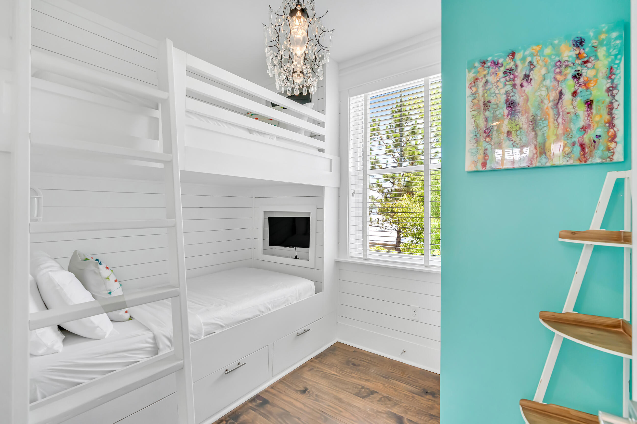$50k Price Improvement! Welcome to the popular Wind Song plan in NatureWalk at Seagrove, a thoughtfully designed home offering both comfort and functionality in one of 30A's most desirable communities. This spacious retreat features two primary suites, each with generous ensuite baths including soaking tubs, perfect for relaxing after a day at the beach. One of the primary suites is upstairs and opens to a cozy private porch, while the home's large front porch invites front porch sitting, morning coffee, and friendly chats with neighbors. A rare 1-car garage and fenced-in dog run add both convenience and charm. Inside, you'll find a large open living room ideal for gathering with family and friends, while the upstairs loft offers a second living space where kids can relax and unwind. The custom bunk room is a true highlight, featuring built-in bunks with individual TVs, fun and functional for younger guests. Solid pine floors throughout bring warmth and timeless style to the home.