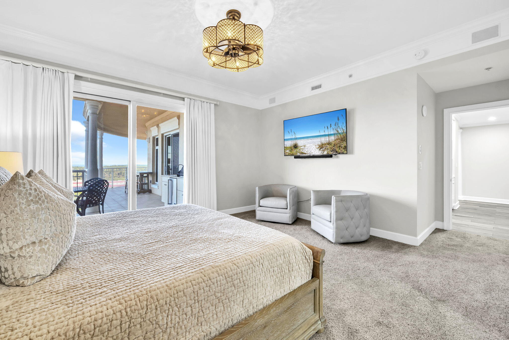 This impeccably designed residence offers three spacious bedrooms and an abundant open living area, beautifully furnished with designer pieces that enhance both comfort and style. A striking mahogany double-door entry with opaque glass sets a dramatic tone upon arrival, leading into living spaces finished with wood-look plank tile and extensive windows that frame breathtaking panoramic views of the Choctawhatchee Bay. The chef's kitchen is a true showpiece, featuring gorgeous floor-to-ceiling cabinetry, a brick-inspired tiled backsplash, granite countertops, and high-end Viking appliances, including a wine cooler. Two fabulous, oversized kitchen islands create exceptional flow for entertaining and everyday living. A long, elegant hallway is accented with custom built-in bookshelves, while the guest half bath is elevated with sleek, sophisticated wallpaper. Each bedroom is finished with cozy plush carpet, and the primary suite offers a private retreat complete with professionally designed closets and an opulent spa-like bath featuring a spacious soaking tub and a separate walk-in shower. Additional interior highlights include a large laundry room, a bonus room ideal for flexible use, and fabulous designer fixtures throughout. Outdoor living is equally impressive, with a wraparound balcony that dramatically expands your space. The balcony is fully equipped with an outdoor grill, refrigerator, and sink, perfect for cooking, dining, and enjoying the coastal breeze and stunning bay views. Resort-style amenities complete this exceptional offering, including a two-tier pool and hot tub, fitness center, spa and sauna, dog park, hobby and game rooms, guest suites, and two deeded covered parking spacesdelivering luxury, convenience, and lifestyle all in one remarkable residence. The Kelly Plantation neighborhood encompasses miles of walking trails, rubico and hard tennis courts, pickleball, basketball, ponds, a community gathering center, a gym, a huge pool and gated security at both entrances.