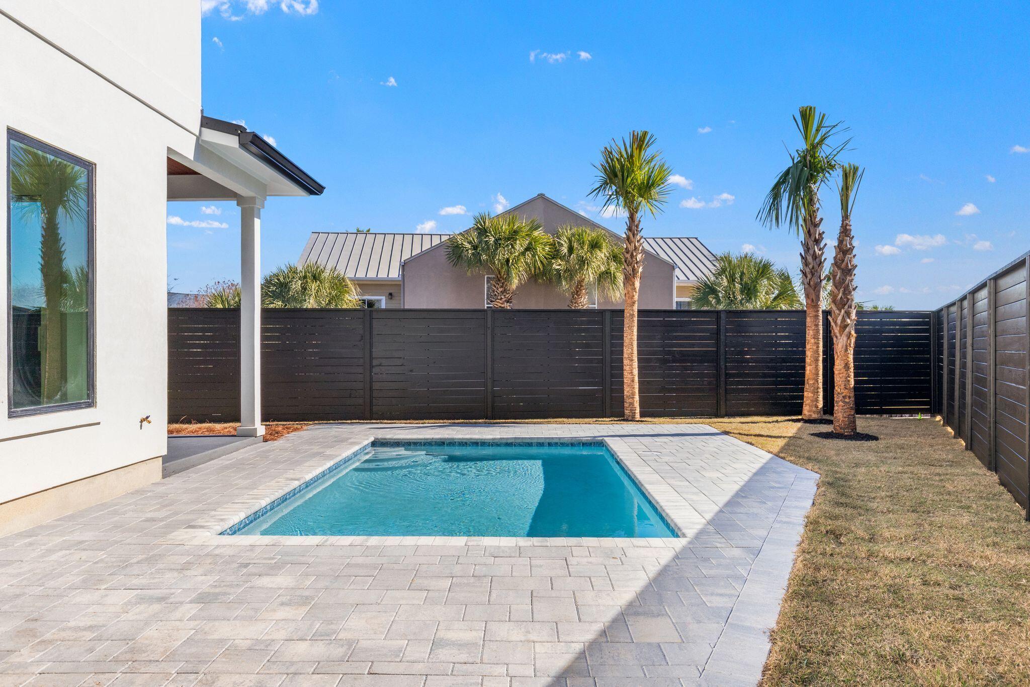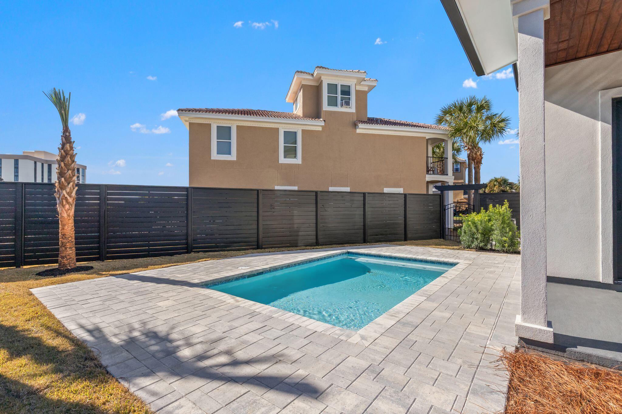 Modern coastal new construction with a private pool in the desirable Terra Cotta Terrace community of Destin. This thoughtfully designed home features an open-concept floor plan with recessed lighting and abundant natural light throughout. The designer kitchen offers custom cabinetry, dramatic stone countertops, a farmhouse sink and stainless steel appliances. Well-appointed bedrooms include custom bunk beds and flexible sleeping spaces ideal for guests or family. Spa-inspired bathrooms feature illuminated mirrors and designer tile. Enjoy seamless indoor-outdoor living with a fully fenced backyard, in-ground pool, and paver deck. The home is complete with a contemporary stair railing, dedicated laundry area, and modern exterior. Convenient to beaches, dining and shopping.