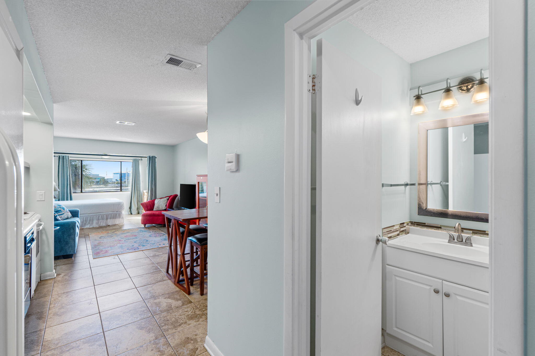 !!MOTIVATED SELLER!!! Seller concession available for updates with acceptable offer. Fully furnished Studio unit. Everything you need for an effortless beach escape or short-term rental gem. The living room features a sleeper sofa for two, perfect for hosting guests, while the bedroom nook offers a queen-size bed. Sunset Harbor offers a community pool, laundry, boat parking, a private fishing pier, and a water side pavilion with grills for cooking and dining outdoors. Each building has an elevator. This is the perfect location for catching the best sunsets on Navarre Beach. Located on the sound this unit is just a short walk or fun golf cart ride to the Gulf. This unit is currently part of a rental program-the perfect opportunity to snag an investment before peak season.